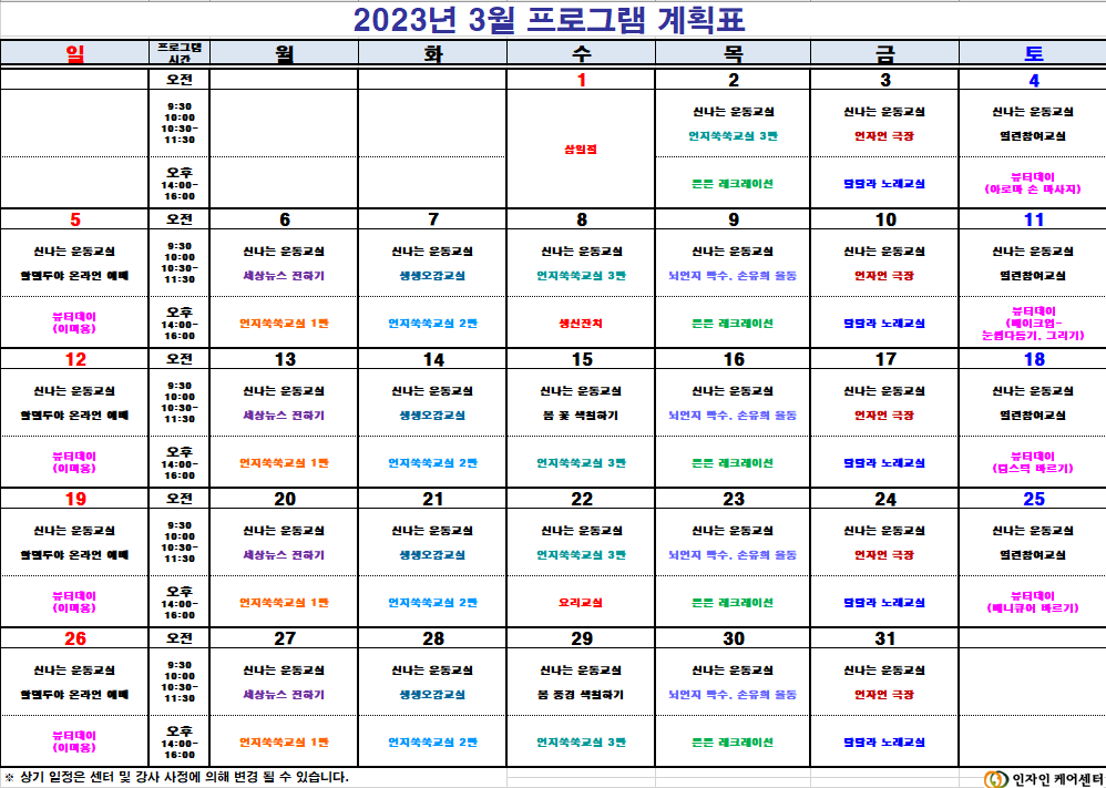 2023³â 03¿ù ÇÁ·Î±×·¥ ÀÏÁ¤Ç¥